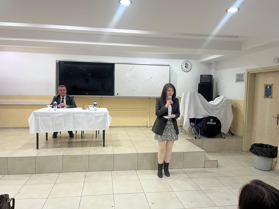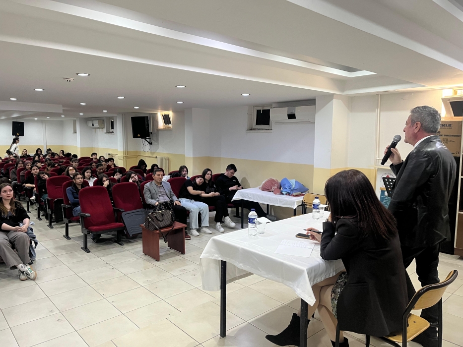 Okul Müdürü Turgut Yazar, İngilizce zümre öğretmenleri Gülgonca Ertengil ve Dilan Birtane Karakaş ile Meslek Tanıtım Kulübü öğretmeni Hatice Çakıroğlu’nun da hazır bulunduğu etkinlikte öğrencilere İngilizce Öğretmenliği, Japonca Öğretmenliği, Erasmus, çift diploma, Work and Travel ve Freemover gibi ulusal ve uluslararası eğitim fırsatları hakkında bilgi verildi.